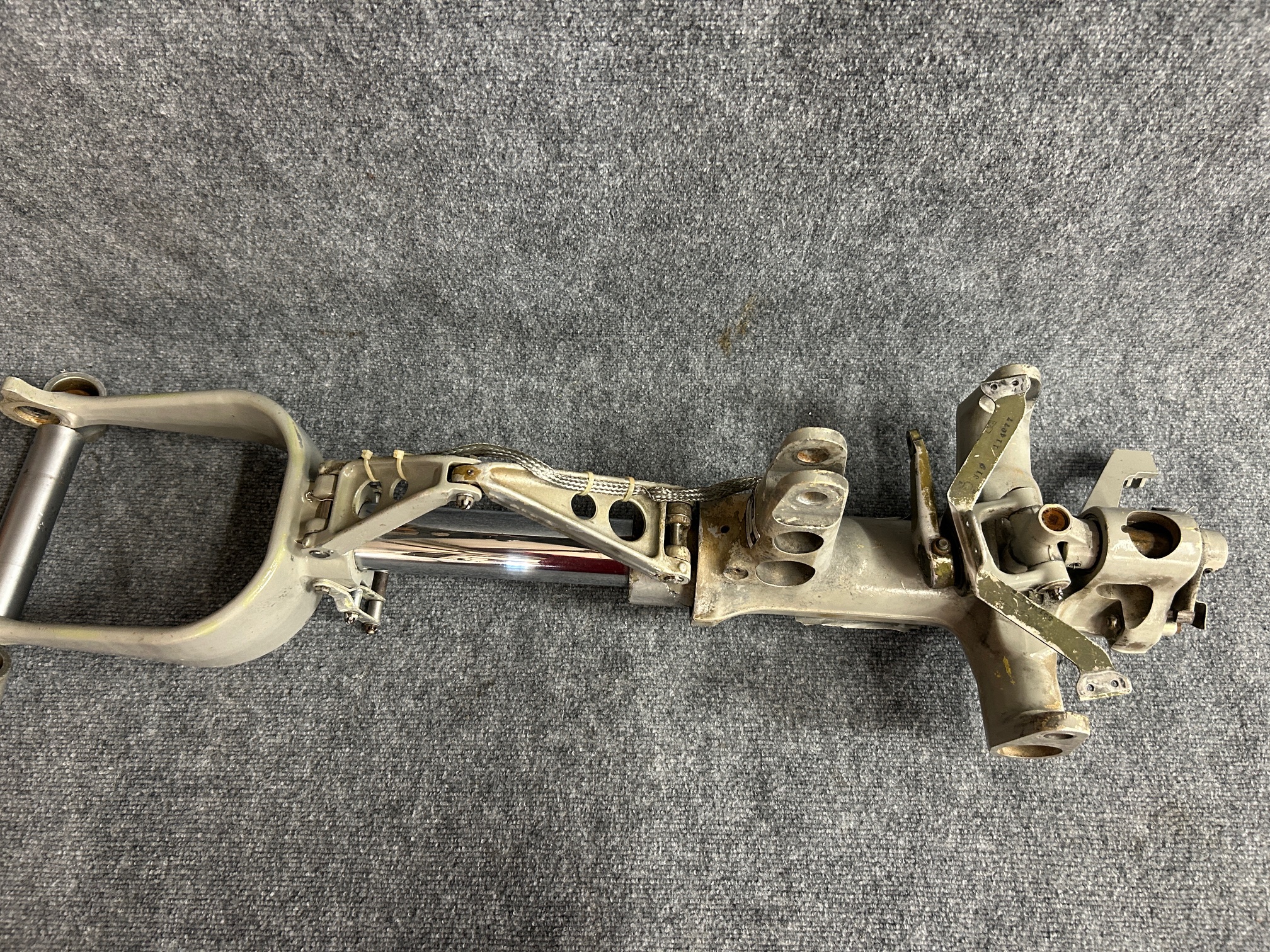 Nose assembly has scratches, scuff marks, and paint chipping from multiple areas