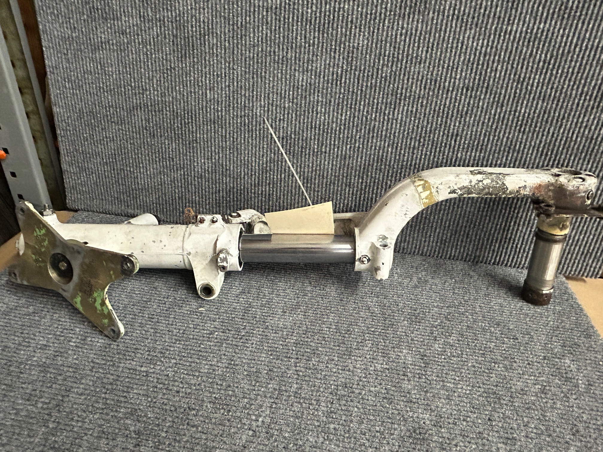 This nose gear assembly is as removed, it also has some rust areas as well as scratches, scuff marks, and paint chipping in multiple areas. Please see uploaded photos for more details